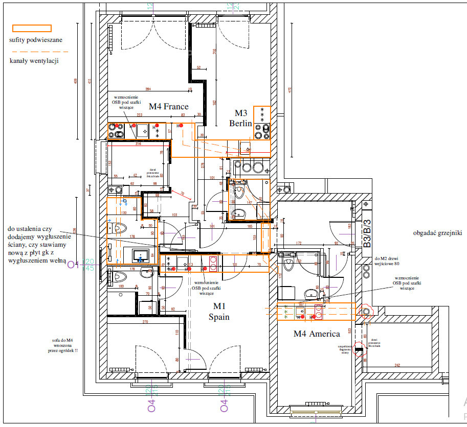 - mieszkanie zostało podzielone na 4 niezależne apartamenty,