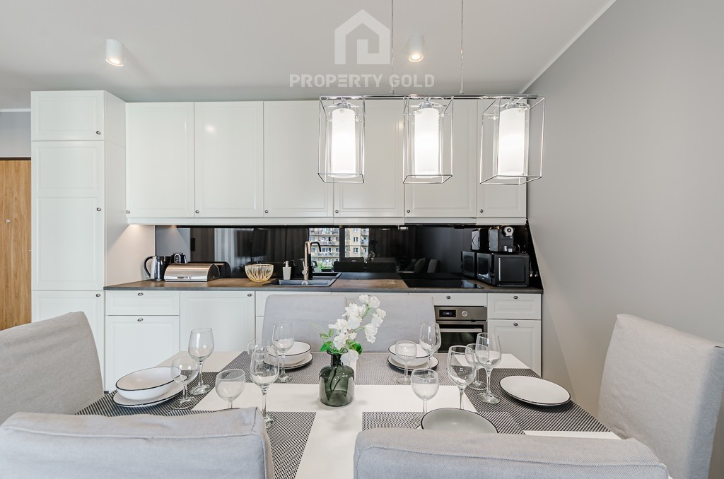 - w pełni wyposażony aneks kuchenny ze zmywarką,