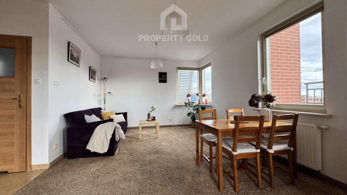 - jasny, przestronny salon ze stołem jadalnianym z wyjściem na słoneczny balkon,