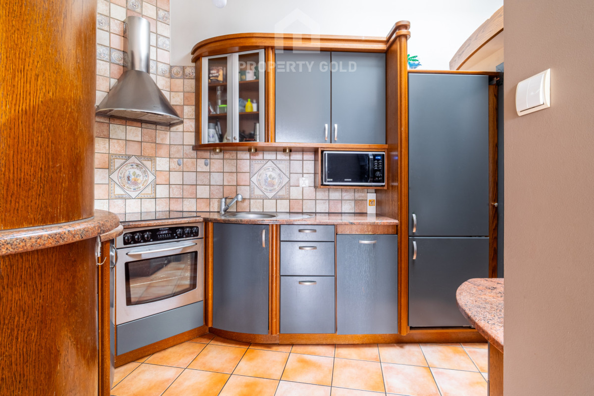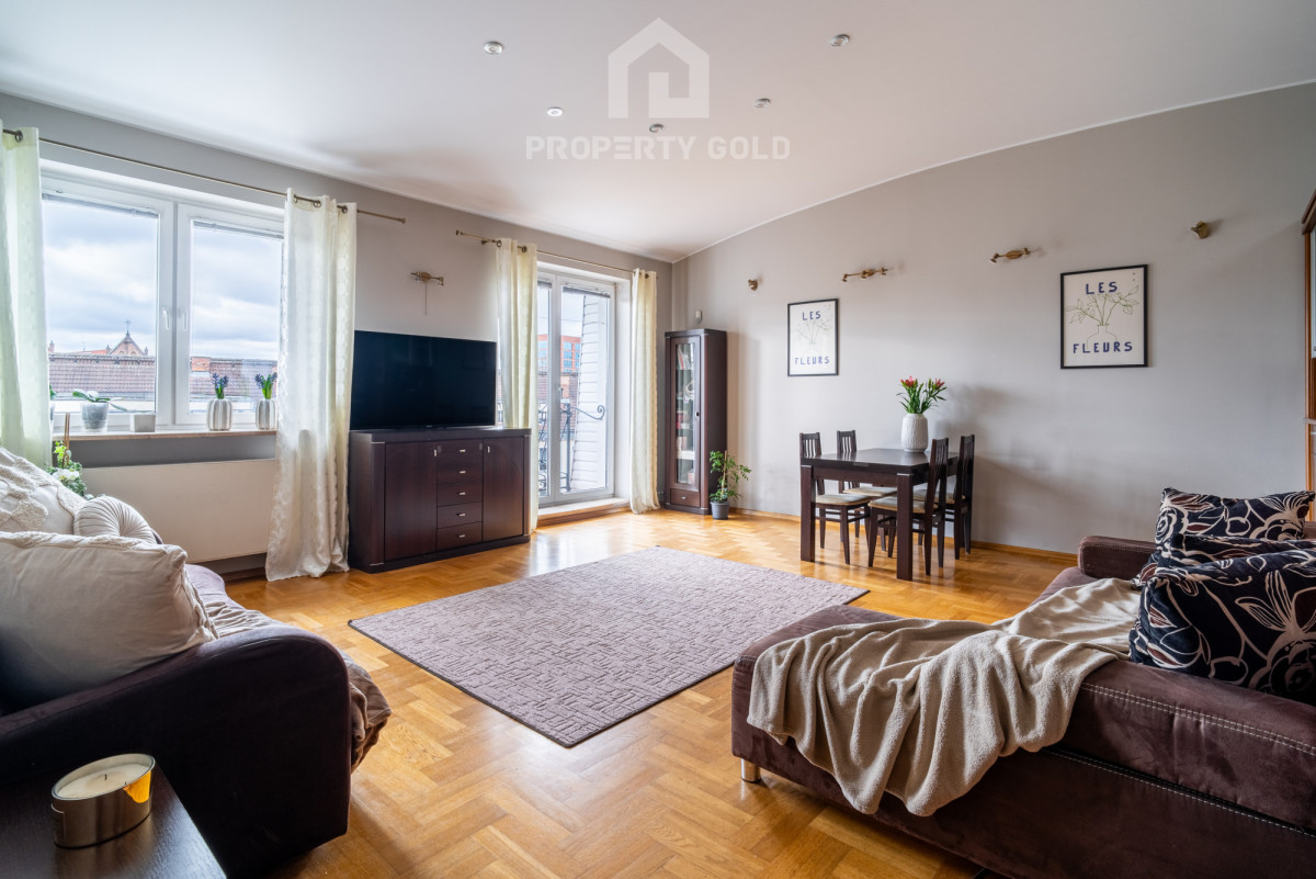 GDAŃSK ŚRÓDMIEŚCIE, ul. Browarna 1; Wyjątkowy apartament usytuowany w kamienicy z lat 50-tych, na 4 piętrze i składa się z 3 pokoi (80 m2). Wnętrze ma wyjątkową wysokość nawet do 3,6 m i zostało fantastycznie zaprojektowane przez wyróżnianą artystkę. Apartament ma duże przestronne okna i balkon, z których rozciąga się niesamowity widok na dachy zabytkowych kościołów ( św. Brygidy, św. Katarzyny oraz Bazylikę Mariacką) a także na stocznię Gdańską i jej charakterystyczne dźwigi. W apartamencie są dwie duże sypialnie, dodatkowa garderoba. Salon jest bardzo przestronny, połączony z aneksem kuchennym i holem. Całość jest wykonana z najwyższej klasy materiałów naturalnych, marmurowe parapety i blaty kuchenne, dębowe meble i parkiet.