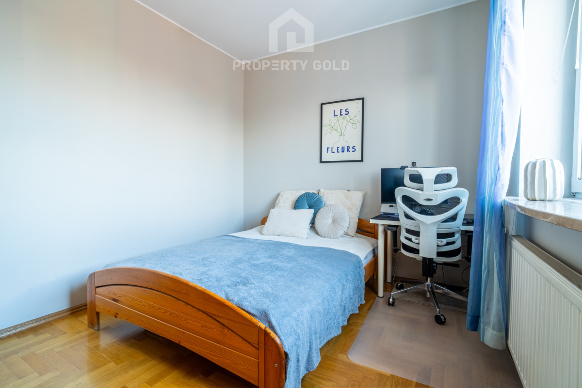 Do mieszkania przynależy 10 m2 pomieszczenie na tym samym piętrze, ogrzewane, możliwość zagospodarowania jako gabinetu czy pracowni.