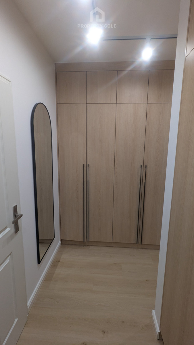 Wszystkie meble zostały wykonane na wymiar przez stolarza co zapewnia sporo miejsca do przechowywania. Całe wnętrze jasne, spójne i nowoczesne. Do mieszkania przynależy przestronny balkon, idealny do wypoczynku.